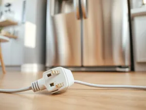 Jeśli gniazdko jest słabo dostępne, odsuń lodówkę na tyle, byś mógł bezpiecznie dosięgnąć do przewodu. Dobrze jest też odczekać chwilę, aż żarówka wystygnie, jeżeli tuż przed awarią w lodówce świeciło światło. Ciepły klosz w połączeniu z delikatnym plastikiem potrafi pęknąć znacznie szybciej niż zimny.